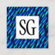 A square business card template with initials placed inside a square panel. This version also has a background image. The initials are in the Integrity bold font. Name and profession/job title along with telephone, email and website address in black on the reverse side on a white background, using variations of the Matt Antique font.