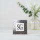 A square business card template with initials placed inside a square panel. This version also has a background image. The initials are in the Integrity bold font. Name and profession/job title along with telephone, email and website address in black on the reverse side on a white background, using variations of the Matt Antique font.