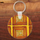 square retro art deco brown pattern key ring