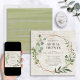 Modern and trendy, this square bridal shower invitation design features a faux copper geometric embellished with watercolor eucalyptus greenery, over a faux white birch bark texture. The back of the card features an olive green watercolor texture. Copyright Elegant Invites. All rights reserved.