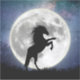 The horse hits in front of the moon.