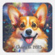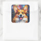 Square Stickers with Rainbow Color Fireworks and Playful Corgi