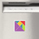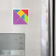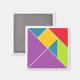 The ancient Chinese tangram puzzle consists of 7 geometric shapes: 2 large triangles, 1 medium triangle, 2 small triangles, 1 square, and 1 parallelogram. The puzzle is shown completed to form a colourful square. I hope you enjoy this tangram magnet.
