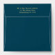 This deep teal and goldtone square envelope has a large central gold scroll circle medallion pattern on the inside with ornate swirled hearts detailing and gold stars and dots that lay over top of a dark teal blue background with another layer of fine bright aqua blue swirls and scrolls on it that match the Indian inspired wedding and engagement invitations shown below. You can select the colour of your choice for the outside of the envelope. Customise it with your own return address. If you want to change sizes, please email niteowlstudio@gmail.com to have one made up.