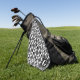 Modern and stylish golf tower features a modern black and white triangle and square geometric seamless pattern with custom family monogram initial letter design.