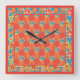 Square Wall Clock, Ditzy Orange Floral Patchwork Clock