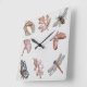 Nursery Wall clock with Nature prints. For nursery or play room. Square 10"x10" clock with Pinecone, Acorn, Maple leaf, Oak leaf, Ginkgo leaf, Bee, Dragonfly and Butterfly.