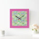 Square Wall Clock, Spring Primroses, Pretty Pink Square Wall Clock