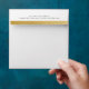 Simple square 5.25" x 5.25" invitation, card, and announcement mailing envelopes with printed return address and faux gold foil effect stripe on the back flap and inside.