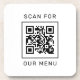 A clean beverage coaster set featuring a crisp white background with a custom QR code and the text "Scan For Our Menu" in bold black. Perfect for restaurants, bars, cafes, breweries, and hospitality venues looking to share digital menus, wifi passwords, or booking links with guests. The QR code is fully customizable.