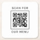 A clean paper coaster featuring a crisp white background with a custom QR code and the text "Scan For Our Menu" in bold black. Perfect for restaurants, bars, cafes, breweries, and hospitality venues looking to share digital menus, wifi passwords, or booking links with guests. The QR code is fully customizable.