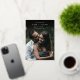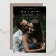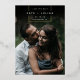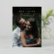 A simple and elegant save the date design for modern couples, featuring a vertical photo that fades to black at the top. A gold foil geometric element bears your names, wedding date, and location in chic sans serif and italic lettering. Add additional details to the back. Due to the placement of the design elements, this style is recommended for vertical photos with ample space at the top.