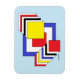 This geometric abstract artwork by Richard H. Fay features an array of squares in the primary colours of red, blue, and yellow, as well as black and white.