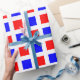 A simple bold repeating pattern of squares. Available in a variety of colours and combinations. The background colour can also be changed providing lots of custom options.