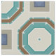 Seamless geometric pattern featuring geometric shapes in teal, blue, brown and beige.