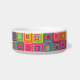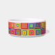 This is a heavy, durable bowl decorated with Tibbies of many colors, the perfect size for hungry/thirsty Tibs. The design is interesting and printing clear.
