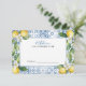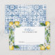 The "Main Squeeze | Watercolor Lemon Mediterranean Tile Bridal Shower Advice for the Bride Card" is a beautifully designed card that is perfect for a lemon-themed bridal shower. Featuring vibrant watercolor lemons, elegant greenery, and a Mediterranean tile pattern in soft blue and yellow tones, this card adds a touch of elegance and joy to the celebration. Designed by CaMiDesigns, it can be easily and quickly personalised with your details. For orders, shipping, product information, and further assistance, please contact Zazzle Customer Care directly.