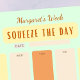 This motivational week at a glance notepad riffs on the Roman Stoic philosophy "Seize the Day" -- "Squeeze the Day!" It makes every week a fresh start. The colourful citrus slices are all my own original artwork. I painted them on paper, with brushes, the old-school way. Your personalisation goes in cute retro typography at top. The colour palette features muted pastel colours of lime, lemon, orange, and grapefruit.