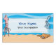 Two cute squid cartoons and a triton sea shell. Underwater landscape. Custom text for name and occupation.