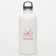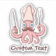 Pink squid chef cartoon with moustache holding knife and cooking fork. Custom text.