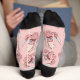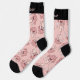 Pink squid chef cartoon with moustache holding knife and cooking fork. Seamless pattern. Custom background colour. Custom top stripe colour. Custom text on each sock.
