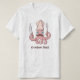 Pink squid chef cartoon with moustache holding knife and cooking fork. Custom text.
