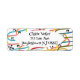 These return address labels have a mid-century modern design of squiggles running vertically in retro colours with black starbursts and circles scattered about the design.
