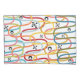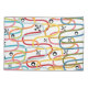 This pillowcase has a mid-century modern design of squiggles running vertically in retro colours with black starbursts and circles scattered about the design.