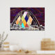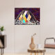 Our colourful Scottish themed poster print features a modern interpretation of Glasgow's Clyde Arc Bridge, more commonly known as the "Squinty Bridge" among Glaswegians. Some of the metal mesh supports have been coloured in, while the night sky can be seen through others. The clouds behind the bridge have been treated with a soft neon glow effect. The poster would be the perfect gift for lovers of the city of Glasgow, or anyone with Glaswegian roots who enjoys modern art and bright colours.