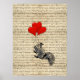 Easily customise this cute funny romantic vintage squirrel illustration with red heart balloons with your name, text or initials.