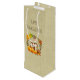 Happy Thanksgiving wine gift bag. Designed with a cute squirrel standing behind some orange watercolor pumpkins. A foliage wreath surrounds them with an oak leaf and orange flowers and other sprigs and leaves.