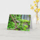 A blank greeting card featuring a cute grey squirrel sitting on a green-leafed vine. This is a cute nature photo.