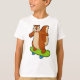 The t-shirt feels and looks great quality, a good thick cotton. It will be a little big for my son, but that means he will be able to wear it and not out grow it too soon. The print was as described on the order when personalised. True size, shape and colour T-shirt- thanks.