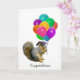 A graduating squirrel holds a bunch of colourful balloons. Send your congratulations with this fun card.