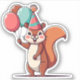 Add a touch of whimsy and cheer to your belongings with this sticker featuring a cute squirrel wearing a birthday party hat and clutching a bunch of balloons with its tiny paw.