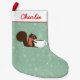 Teal colored holiday stocking with snowflakes and a cute round eyed squirrel wearing a warm winter sweater and enjoying a hot cup of coffee. This fun Christmas stocking will add some festive cheer to your fireplace mantle. Great for coffee lovers and anyone who loves cute woodland animals. Visit Jenn’s Doodle World for even more great Xmas gifts with this original squirrel design.