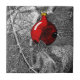 Pen and ink drawing of a squirrel climbing in a Christmas tree. The squirrel is surprised by seeing its own reflection in an ornament. The shiny red ball stands out against the black and white drawing, emphasising how strange it must be to the squirrel to see itself.