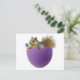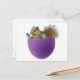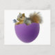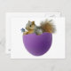 A squirrel sits in a purple eggshell holding a small blue flower. Send out this Spring postcard this Easter.