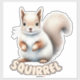The word "SQUIRREL" is displayed prominently beneath the illustration in bold, bubble-style lettering. The white text is outlined in pink, perfectly complementing the soft and cosy aesthetic of the design. This clean and vibrant sticker is designed to stand out on any surface, whether it’s a wall, piece of furniture, or another decorative element in a child’s space.