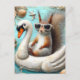 Squirrel on Floating Swan Funny Cute Postcard