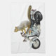 A squirrel rides histoy motorcycle, tail blowing in the wind.