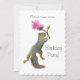 A standing squirrel holds up pink flowers on these cute birthday party invitations.