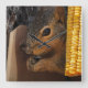 A clock featuring a photo of a squirrel on a feeder.