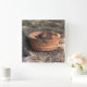 A clock featuring a photo of a squirrel in a basket.