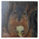 A ceramic tile featuring a photo of a squirrel.