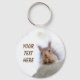 Closeup front view of a squirel with a walnut in its forepaws, looking straight at you. Funny and curious animal. Squirrel symbolises practicality, the necessity to make pleriminary provisions. Keychain. You can change or delete the image and the template text.