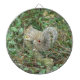This awesome dartboard features a photograph of a cute fluffy grey squirrel clutching an acorn and sitting in a tree in the forest.