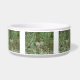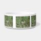 This awesome pet bowl features a photograph of a cute fluffy grey squirrel clutching an acorn and sitting in a tree in the forest.