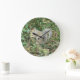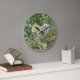 This awesome clock features a photograph of a cute fluffy grey squirrel clutching an acorn and sitting in a tree in the forest.