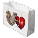 A squirrel holds a red heart. A perfect bag for Valentin'es Day gift giving.